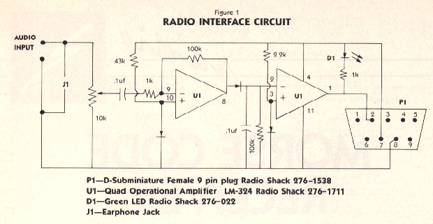 The program can also he used for code practice without the interface. Send code with a joystick, or by connecting a Morse code key to the joystick port. You will hear the Morse dots-and-dashes beeping and see letters displayed on the screen as you operate the joystick or key.