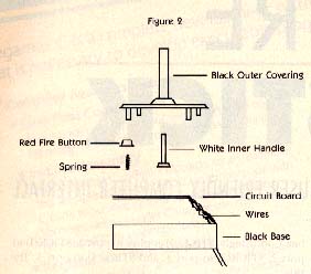If you haven't stolen a peek inside your joystick, don't get your hopes up. There isn't much to see. They look a little like Figure 2. If and when you do remove those four Phillips-head screws on the bottom, be careful not to lose anything-such as that itty-bitty spring that I lost my first time in. I replaced it with a ball-point pen spring. Just cut off about a third and it works pretty well.