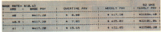 This short program can easily be modified to your own needs, if you know the essentials of BASIC programming. For example, a plumber--or other wage-earner who makes more than $20 an hour--can increase the program's maximum base pay rate. (Hint: Don't forget to change the 20 in line 490.)