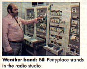 IBM microcomputers monitor the stations, deciphering hydrologic data, wind speed, air pressure and temperature. This information is then sent to repeaters. In yet another room, meteorologists record weather news reports to be broadcast over the local shortwave weather band.