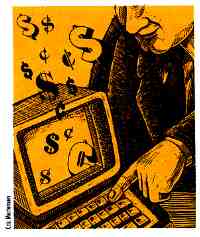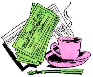 In entering checks and deposits, the cursor moves from Check # to Date, Name (16 characters) and Amount. Then you choose from 15 budget categories. A formatted disk without DOS holds about six files of 400 checks each, and files can be linked.