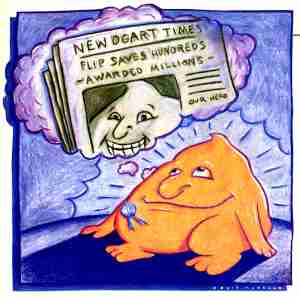 A smile crept onto his face as he imagined the headline, "FLIP SAVES HUNDREDS-AWARDED MILLIONS." And it could all happen with a little help from his friend with the joystick.