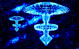 "Mothership" (MTHRSHIP.PC1) is a picture created by Jon A. Bell, Editor of START, The ST Quarterly and Antic's ST RESOURCE. The image was created with CAD-3D 2.0 (wire-frame mode) then ported to DEGAS Elite. Both the background and the ship was repeatedly enhanced with Tom Hudson's Anti-aliaser Desk Accessory, giving a ghostly, ethereal quality to the image.