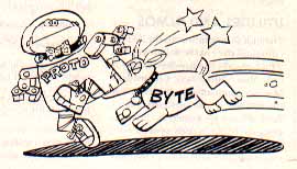 Notice that all we have to do to animate Proto is print the different versions one after another in the same place, with a small delay between each of them to slow things down so we can see each picture. This technique is used by a lot of programs to do simple (and sometimes complex) animation. For example, the aliens in Space Invaders are created using a redefined character set.