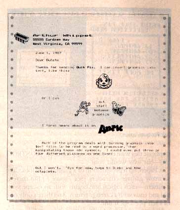 Here's where Quik Pix PC comes in. It converts Print Shop Library graphics to PaperClip format so that they can be included in text files.