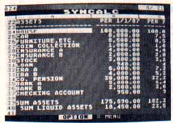 Now we'll enter this raw data into SynCale and generate a personal net worth file. This article assumes that you already know how to operate SynCale software. For instance, you should know that pressing [OPTION] starts a command sequence, how to move around within the spreadsheet, etc. Keep your SynCale manual handy!