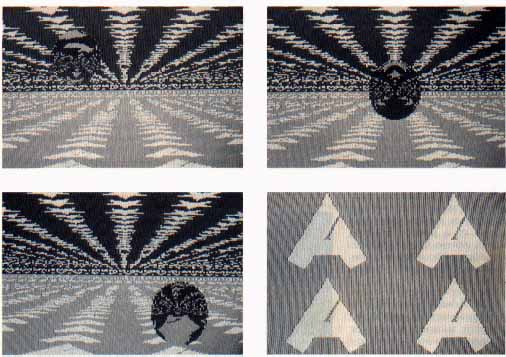 The floor and ceiling are actually distorted Micro Illustrator and Micropainter pictures. Hard-Wired shrinks these pictures into little squares, then uses these squares to tile the ceiling and floor. Figure 2 shows the Micro Illustrator picture used to tile the floor.