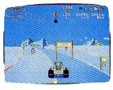There are flags on and beside the road. Running over a flag gives you its point value. You can even get bonus points by running them over in order (although that order is never explained). There are also larger banners, worth up to 500 points, and even bonus banners worth extra time. The more valuable banners are hard to reach because of the obstacles, but it's easier once you learn the tricks. After all, a buggy doesn't have to stay on the road!