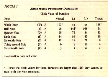 z--Sound duration (1-126) in clocks. See Figure 1 for a list of durations and their corresponding clock values.