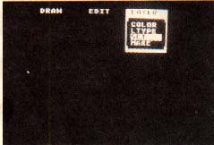 When you RUN Pull-Down Menus, you will see the words DRAW, EDIT and LAYER at the top of your screen. Using a joystick or your cursor keys, you can move the highlighted bar left and right, from one word to another. Press the joystick trigger or [DOWN ARROW] without [CONTROL] to pull down a submenu. (Be careful to only press the joystick trigger once.)