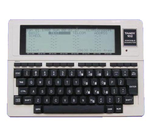 The Model 100 and 102 are work-alike machines with a maximum RAM capasity of 32K less over head. To a very large extent, you will see no working differences. Both machine have built-in BASIC, TEXT, TELCOM, ADDRSS and SCHEDL, an RS232c serial port, a 26-pin parallel port, a 40-pin system buss, a bar code reader port, and a built-in 300 baud modem. The LCD is 40 characters by 8 lines and operates at 600 baud. There is also an option ROM socket for adding additional