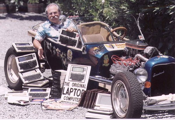 Here's a side shot of the same stuff. TOON-T is a 1923 Ford Model "T" body on an aftermarket frame. It's powered by a 1950 Ford flathead V8 and C4, 3-speed auto trans. The reason for the car and the computers together has to do with the fact that the Model 100 series computers are now called Model "T" computers. And, like the Model " T" automobile, they are still going strong after all these years.