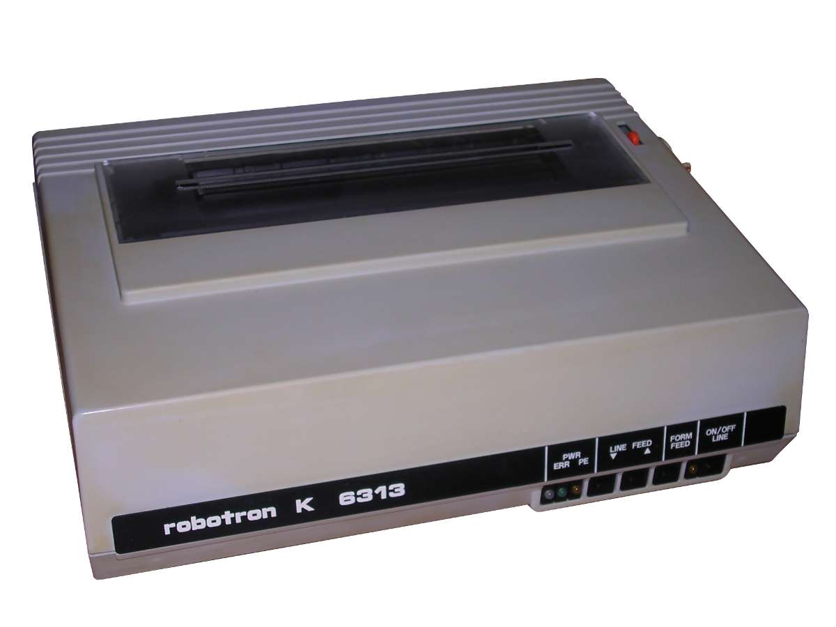9-pin dot matrix printer manufactured by Robotron industries since 1980s. It can be connected to different interfaces by using exchangeable interface cartridges: RS232, IFSS, Centronics or even Commodore serial port. Font ROM is stored in replaceable cartridge inside printer.