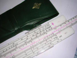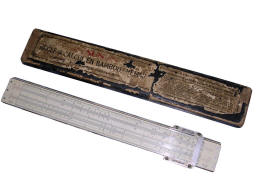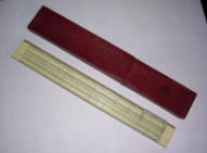 | Hemmi Bambou - Patent 58115 This Japanese slide rule was used by my Grandfather. It has all basic scales plus trigonometric on reverse of slider. It's made of bamboo wood, so it is self-lubricating and it still slides smoothly without jams. Cursor is made of metal and celluloid. It was manufactured between 1917 and 1927. But some other sources state that these cursors were used until 1930s. Hemmi, from Jiro Hemmi, was a well known brand in manufacturing these instruments. In 1910 they started manufacturing slide rules from bamboo wood, making it self-lubricating and preserving geometry. In 1912 Hemmi got a Japanese patent for a slide rule made of wood with laminated, celluloid scale. In 1917 they started to use Sun trademark for foreign market. In 1928 company changed its name to Hemmi Seisakusho & Co. Then they started labelling cursors "Sun Hemmi". In 1930s they manufactured thousands rules every year. Since 1928 some Hemmi rules have P and Q scales. Seen on a few photos, but I have no idea what they could be used for. As most Japanese companies, Hemmi's business disappeared with starting of world war II. Some small quantities were manufactured until 1950s (last ones even in 1970s), but it was not a big production. More: MANUAL, incomplete, and in strange format (photo of a museum item). |