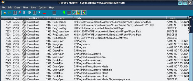 Let's investigate with ProcMon what's HControl doing when PLAY is pressed: