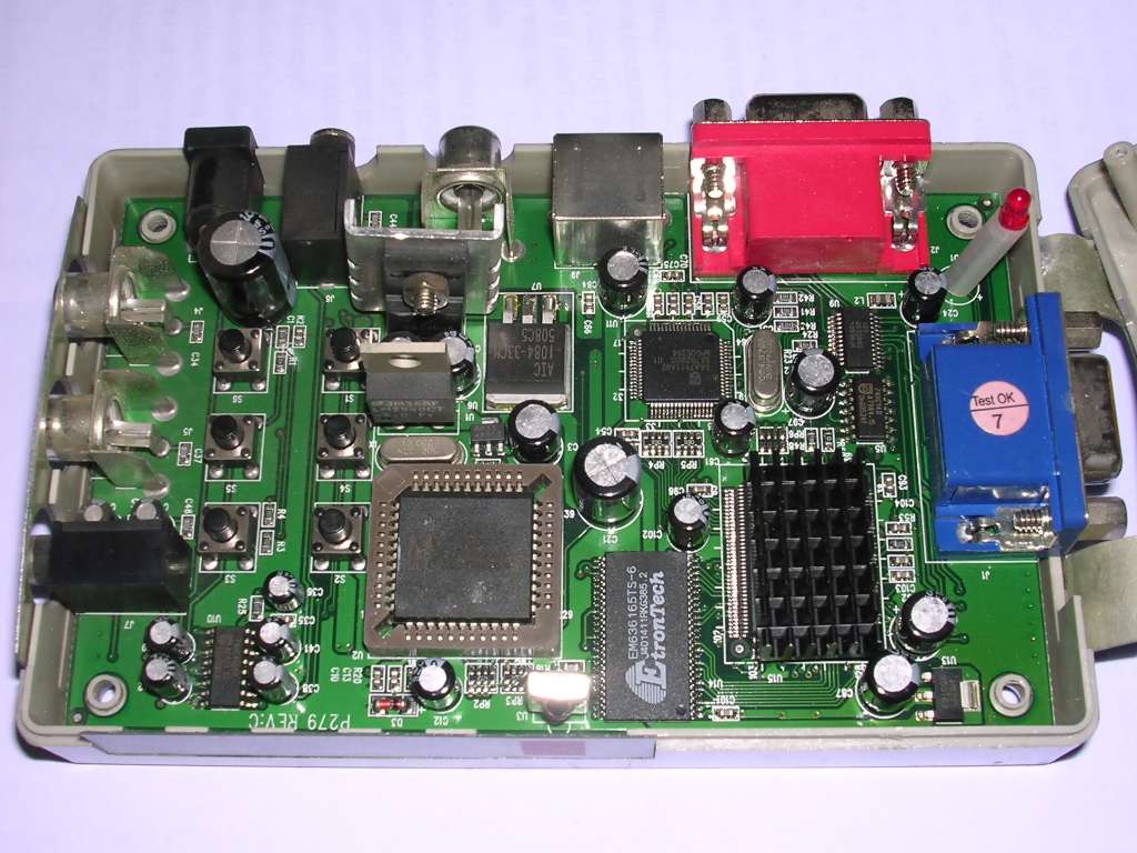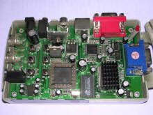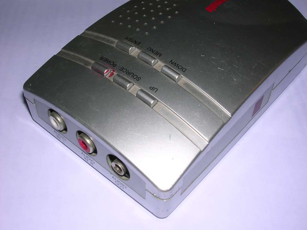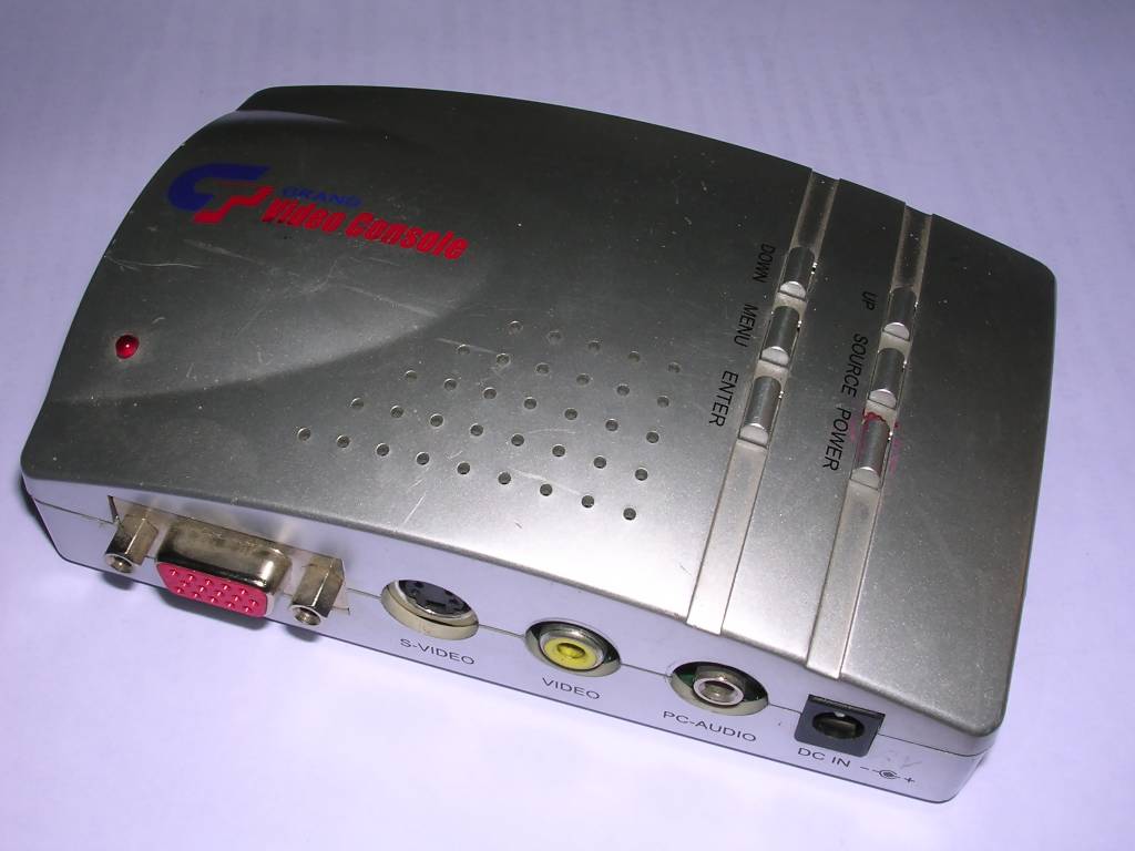 This device reverses function of Pocket Video Converter - it converts different TV signals to VGA. This way it's possible to e.g. watch TV or VHS on VGA monitor without computer. The device has a chip (scandoubler) which icreases frequency of input signal to get compatibility with VGA. It offers switching between VGA and TV signals, scales TV up to 1024x768 (1280x1024 in some models) and has even remote controller support. Alternatively it is possible to control the device with buttons.