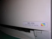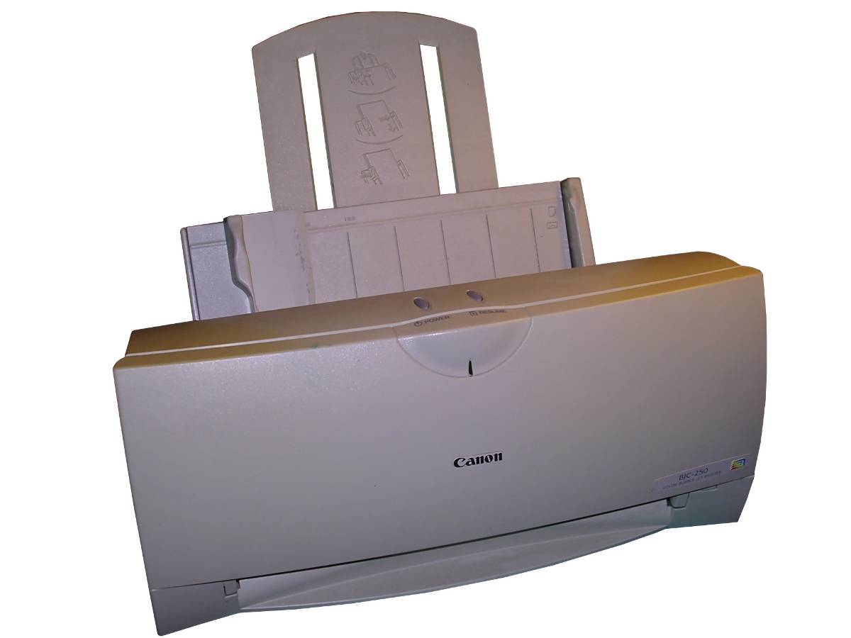 Introduced around 1998, BJC-250 was another printer in the ink jet series called "Bubble jet". This technology introduced in late 1980s (and with color cartridge in 1994 with BJC-600J model) involved using heaters to push the ink drop from the nozzle to a specific place on paper. Thermal expansion made the ink expand and drop into paper. It was also one of the first cheaper ink printers which offered color cartridge and "photo-quality" with special cartridge and paper. Because of this, this printer got some popularity in home computers of late 1990s.