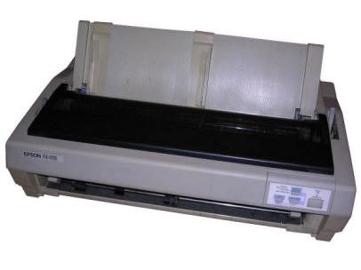 A wide-paper dot matrix printer with 9-pin printing head, released in 1996 it was manufactured and sold for at least a decade. A typical application is printing in forms using continuous paper, so it has a "tractor" for it on the rear. This printer was very popular for printing large accounting reports, inventory lists and invoices. Although it in fact can do some Epson codes, it is mostly used in ASCII printing.
