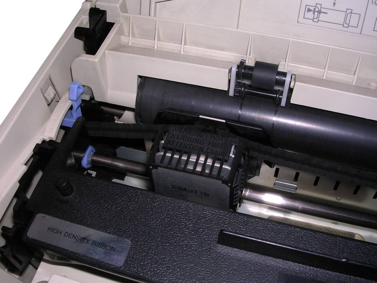 The ribbon is in small cartridge which, contrary to many printers, moves with head.