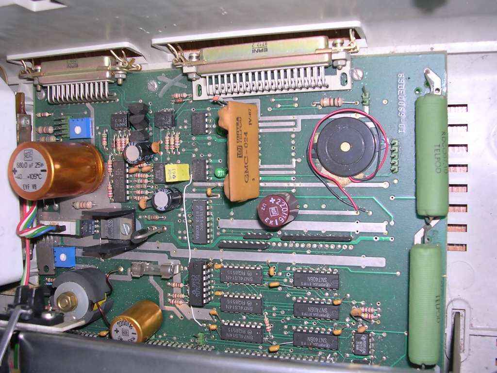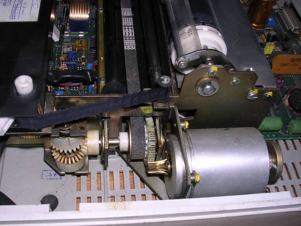 Inside, there is a complete microcontroller system (8031) and control electronics made on a robust components. Soviet stepper motors look like they're for moving something larger than printing head and they indeed have significant force momentum. The printing head with strong electromagnets has 9 pins controlled by 9 separate circuits with transistors.