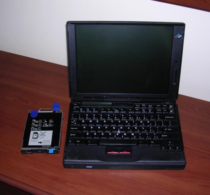 The history of my unit is interesting. I bought it in a flea market for almost nothing with a huge dock as not working unit and I bought it because it had rare 32MB EDO SODIMM RAM modules and 100MHz CPU. I quickly figured out that this problem is a shorted diode in inverter and fixed it, making the device fully functional. I was working on it with Windows 98 for a month, later I got another unit with faster Pentium processor (133MHz) for free, but it had shattered casing and screen. I re-assembled it in my casing (preserving bottom one with CD-ROM drive bay), which was hard as ThinkPads with UltraBay and UltraBay Thick are not 100% mechanically compatible with each other, it lost external FDD connector in this operation. It was used in few presentations, but it constantly suffered overheating problems so it had to be used with keyboard lift set up and telecommunications module removed to provide enough air to cool CPU down. After its HDD got too many bad sectors, I stopped using it.