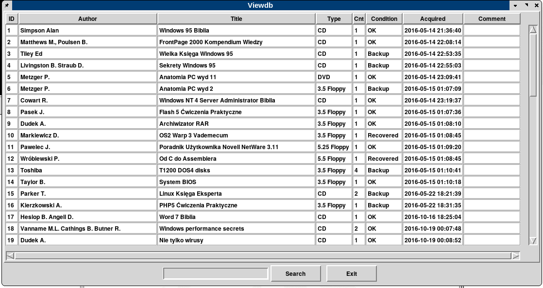 register it in. This will be written to database file. To view database entries, use base.pl, double-click on the item to open directory with images in file manager. The default file manager expected is KDE's Konqueror, but can be changed to e.g. Ubuntu's Nemo, MATE's Caja, Thunar for XFCE or KDE's Dolphin.