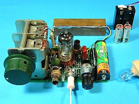 1U5にして聴いてみると、このB電源40Vなら充分な音量があります。これで以前の1-v-1に復帰、再び単3型1本での使用が出来るようになりました。(因みに、1.5V電池の消費電流は約100mAで、電池管のフィラメント電流2本分相当です)