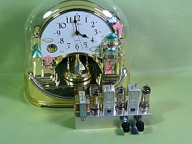 (左上写真のように、置時計の飾りの部分が、“電池管ラジオ”であれば、それも良なのですが)