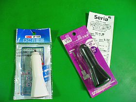 魔流さんには、(毎回、背中を押して頂いているのですが、)今回も紹介して頂いた“セリア”のUSBポート付DC充電器を買って来て、やっこらせ!と“昇圧電源加工”に挑戦してみました。(左写真の右側:片山利器製5V出力 \105)