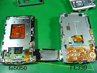 FE-330とFE-5050の液晶モジュールを外して並べてみると、サイズやフレキの引き出し方向、長さなどは殆ど同じで、“いける!”と思ったのですが。
