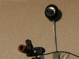 今回、2台のカメラの代わりに、「魚眼235度レンズ+Microsoft HD-3000カメラ」を使った系に置き換えてみた。(図1)