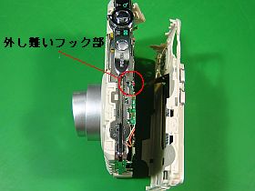 それと、電池蓋検知用超小型SW(赤丸印上側)のツメも「要注意!」でした。(このツメは折れ易いので)