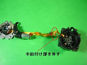 フレキは、最低1箇所、4端子の半田付けは、外さないと先へ進めません。(左写真)