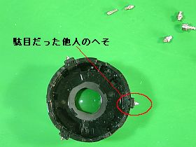 レンズ筒の周囲に付いている筈のへそが、1個欠品。(カメラ外に飛び出す隙間は、無さそうなのに、何処にも無かった)