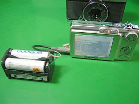 しかし、ACアダプタでは、近くは写せても、屋外風景の試写が出来ないので、外付けのバッテリ電源を用意しました。