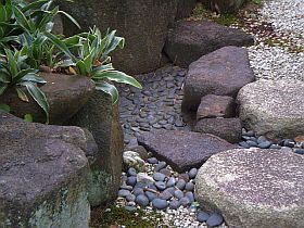 これらを抱えて?撮ったのが彼の有名な(何処でぇ?)当苑自慢の(猫の額の)“枯山水”。(左写真&<クリック>で拡大)