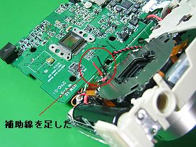 フラッシュは、先に剥した箇所に短いリード線を付けて、ちゃんと半田付けをしたら、正常に動作するようになりました。(左写真)
