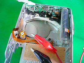 レンズ筒駆動モータ部は丸出しだったので、その端子に約4Vを加えてみたら、少し重いけど、ちゃんと伸びました。