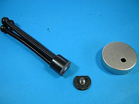 材料は、フレキシブル・スタンド(蛸足/火星人?)の頭から切り出した「留めネジ」と、探し回って見付けた外径42mmの「ビンの蓋