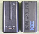 手持ちのバッテリでFUJIFILM製のNP-510は問題なく装着可能でしたが、IBM製PC110用のバッテリパックは、本体をかなり加工しないと中に入りませんでした。