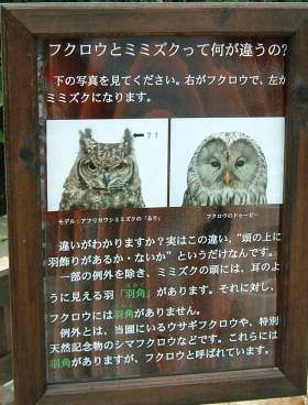 ここは、ふくろうとミミズク(該園の説明パネル)が面白い!(いや、可愛い?かな?)