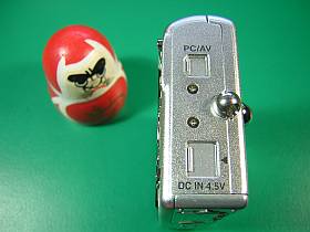 今までのOptio SやOptio S4などでは、入出力端子カバーにゴム蓋を使っていましたが、今回のOptio S5zは、それらを全部金属に代えたようですね。しかも、スライド式になっています。(これは、気に入りました!)