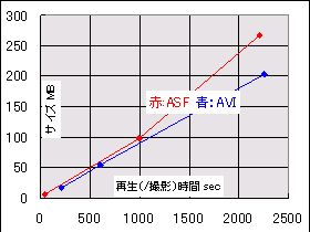 それと、これで撮影したファイルASFの方が、Movix IIIのファイルAVIよりも小さいのではないかとの疑念もあって、撮影時間−ファイル・サイズの比較もしてみました。