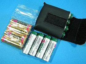バッテリは、主にNiMH充電池を使っていますが、時々蓄電量が不明のまま持ち出して撮影途中で電池切れになる事が多いので、常に予備のNiMH4本とアルカリ乾電池4本を携帯。