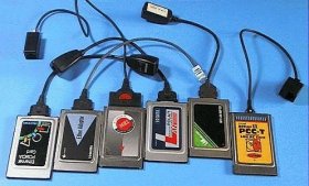 一番使い易いのが、左端のAccton(EN2216)。また、東芝(LANCT00A)、IBM(CreditCardAdapter Ethernet II)も、問題無しです。