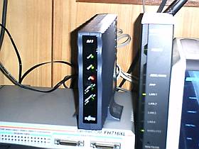 尚、接続は、MN7530を、モデム直結のHUB(兼ルータ?兼無線LAN-AP)にして、ここから16ポートHUB−FH716XLなどへ分散。接続は全て、ストレート・ケーブルと通常のLANポートで。(リバース・ケーブルやWANポートは、不使用)