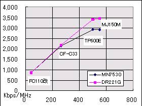 これを、一旦MN7530系に戻して、各レベルのPCで測り比べたら、左図のごとく高クロック側で、ちょびっとですが速くなってますね。