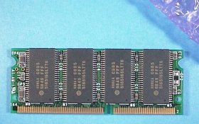 別の店で掘り出し物を買った。名目16MBモジュールで\980+税なんだが、どう見ても64MbitsEDOチップが8個載っているのだ。これは64MBで、動けばTP560などにも使えるはず。(更に漁ってみたが、残念ながら、これ1枚きりだったみたい。後で、調べたらやっぱり、64MBで動いた!)