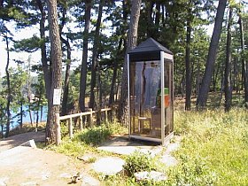 これが彼の有名な「命の電話」らしい。まぁ、人の命をとやかく言う筋合いも(皮も?)無いんだが、大体こんないい景色の所で、命を粗末にしようとする人の気が知れない。(尤も、冬の荒れた日本海は別だろうけど)