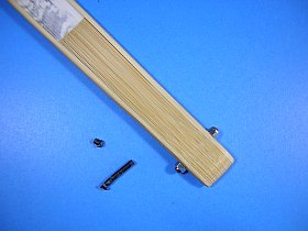 “ならば!”と、思い切って、3mm径25mm長の金属ビス(頭を切り落としたもの)と丸頭ナットを使ってやってみた。・・・ 結果、不恰好だけれど何とか使えそう。来夏はこれで凌ごうか。